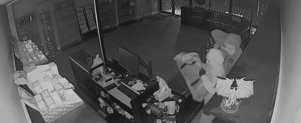 Surveillance video shared with CityNews shows two masked thieves breaking in the front door, climbing over fencing and counters, and filling duffle bags with merchandise – all in about three minutes.