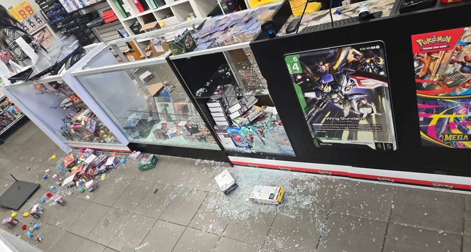 All the store’s most valuable items were taken, as thieves made off with binders full of rare Pokémon and One Piece cards – some worth $1,500 each.