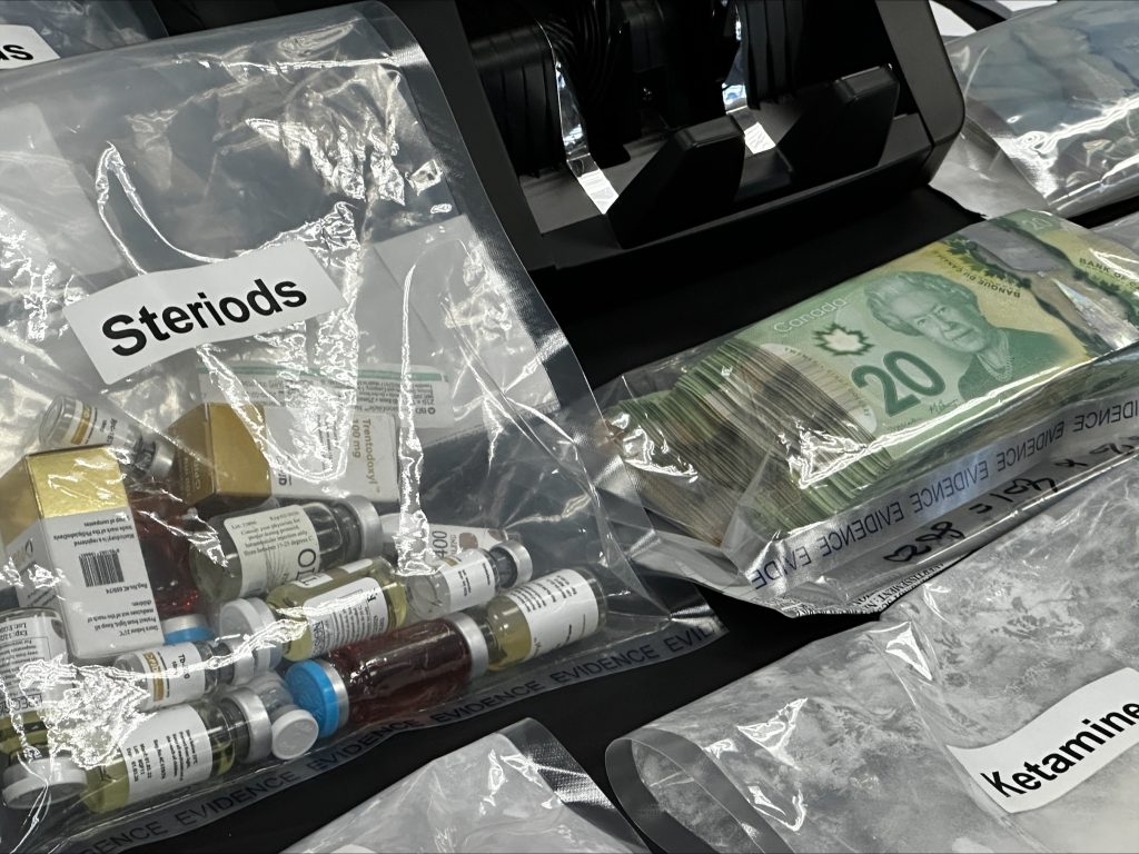 Police say they seized a small amount of steroids and meth, as well as $47,000 cash, from the Sherwood Park home.