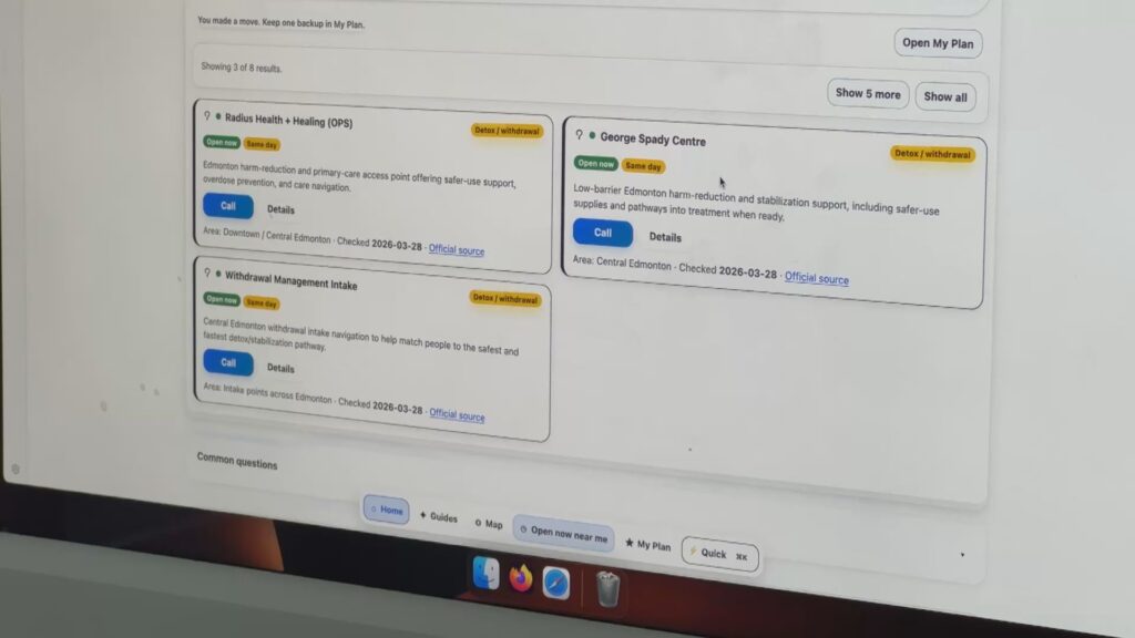 This is the reason why he created a directory listing all support services yegsupport.com helps you quickly find who to call, where to go, and what to do next for crisis, withdrawal, treatment, housing, and even legal — all you have to do is click on a category, and it will provide services, hours, and travel time.