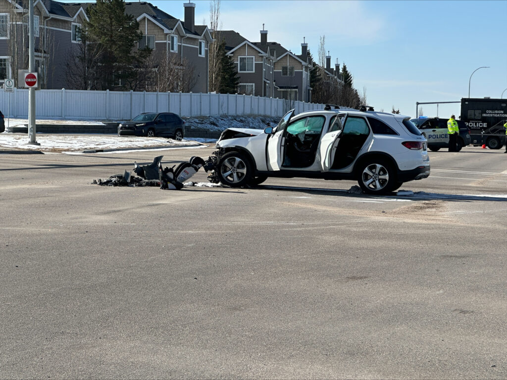 The Edmonton Police Service says it was called about the two-vehicle collision on Terwillegar Drive and 23 Avenue around 8:37 a.m.